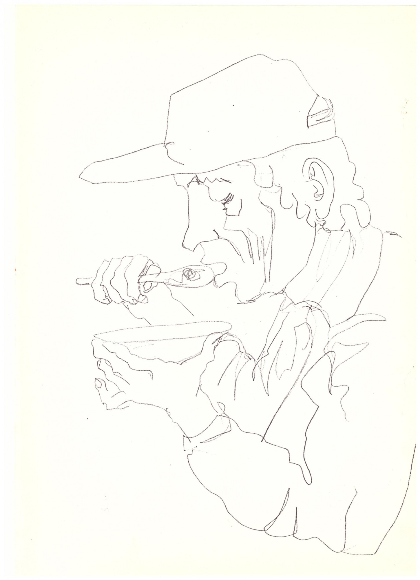 Egy vonallal rajzolt legtöbbször. Ahol letette a ceruzát, ott egy lantos lába, egy ember háta lett. De meglátni csak a vége felé lehetett.